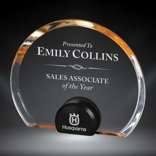 Gold Horizon Acrylic Award Free Standing. (3 Sizes) Engraving IS INCLUDED in the price. Artwork layout file will be emailed to you for approval b...