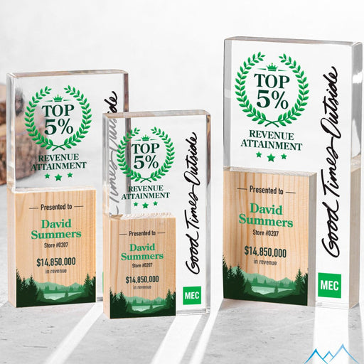 Solid wood peak and Acrylic Combination Rectangle Award. Includes Full Color Printing. The Montagnes Award features a unique composition, showcasi...