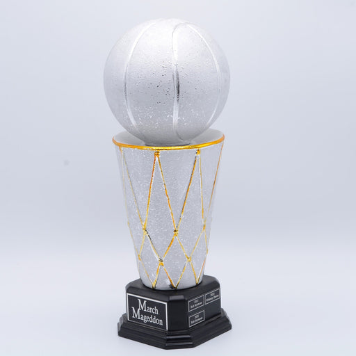 Ceramic Basketball on Net trophy on black base. Engraving plate is included. Please specify engraving text in the box provided or email us.