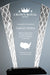 Fan Shaped Accent Glass Award. Blue or silver accent glass mounted on a blue and black glass base. Silver is just a black base.