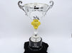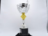 Silver Metal Cup Trophy with Handles on Weighted Plastic Base. (5 Sizes). Cup is metal, base and stem are plastic.