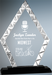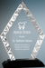 Diamond Shaped Accent Glass Award. Blue or silver accent glass mounted on a blue and black glass base. Silver has a black base only.