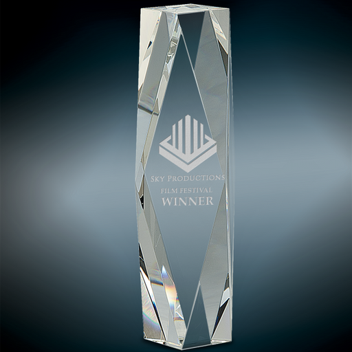 Clear optic crystal facet tower stands alone. Packaged individually in a lined gift box. 3 Sizes. Deep Etch Sand Engraving IS INCLUDED in the pr...