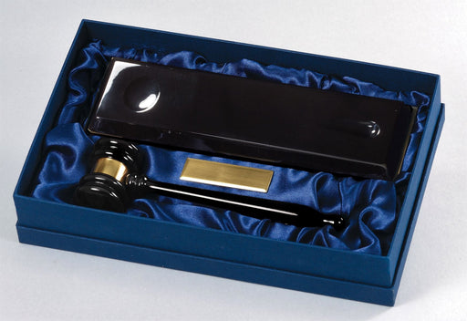 Gavel on Piano Finish Black base. 10"W. Beautifully lined presentation box included. Engraving IS INCLUDED in the price. Please email your per...
