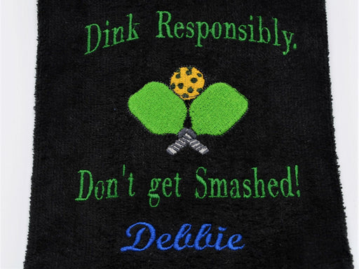 Pickleball Sports Towel - Embroidered. Includes embroidery. Pick design "Don't get Smashed" or "Get your pickle on" or we can do custom for additi...