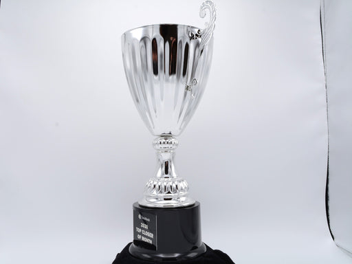 Silver / Gold Metal Cup Trophy on Weighted Plastic Base. (6 Sizes). Cup is metal, base and stem are plastic. A lid and topper can be added to this...