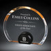 Halo Circle Acrylic Award with black anodized aluminum stand. (2 Sizes, 3 Colors). Aluminum Stand will engrave white.